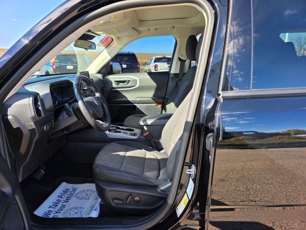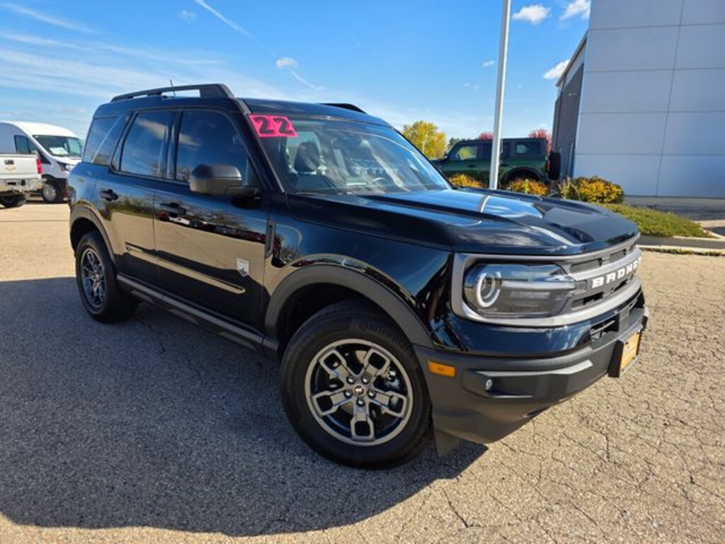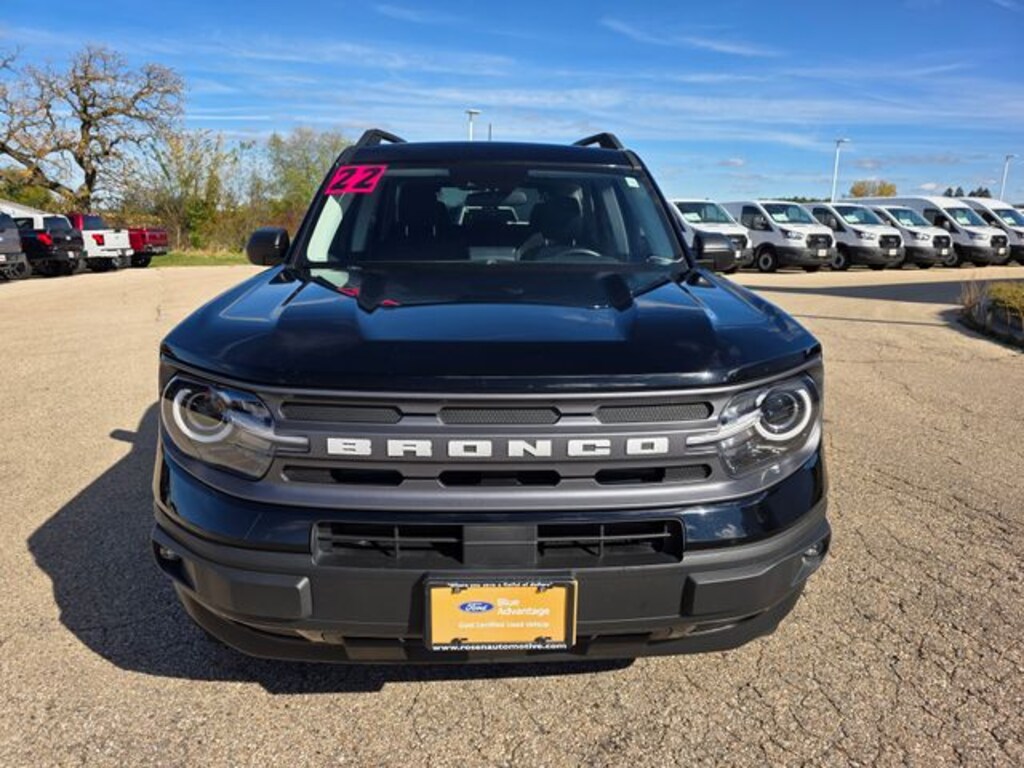 Certified. Shadow Black 2022 Ford Bronco Sport Big Bend 4WD 8-Speed Automatic 1.5L EcoBoost Fresh Arrival, One Owner, Clean Vehicle History, AWD / 4WD / 4X4, Trailer Hitch / Tow Package, Cruise Control, Bluetooth, Backup Camera, SiriusXM, Blind Spot Monitor, Heated Seats, Moonroof / Sunroof, Power Driver Seat, Rear USB Ports, Ford Certified, Class II Trailer Tow Package w/Trailer Sway Control, Convenience Package, Equipment Group 200A, Evasive Steering Assist, Ford Co-Pilot360 Assist+, Front Driver & Passenger Seatback Zipper Pockets, Heated Front Bucket Seats, Intelligent Access (Lock/Unlock), Intelligent Adaptive Cruise Control w/Stop & Go, Leather-Wrapped Steering Wheel, LED Fog Lamps, Rear Parking Sensors, Universal Garage Door Opener (UGDO), Voice-Activated Touchscreen Navigation System, Wireless Charging Pad, 3.80 Axle Ratio, 4-Wheel Disc Brakes, 4G LTE Wi-Fi Hotspot Credit, 6 Speakers, ABS brakes, Air Conditioning, Alloy wheels, AM/FM radio: SiriusXM, AM/FM Stereo, Auto High-beam Headlights, Automatic temperature control, Brake assist, Cargo Management System, Compass, Delay-off headlights, Driver door bin, Driver vanity mirror, Dual front impact airbags, Dual front side impact airbags, Electronic Stability Control, Emergency communication system: SYNC 3 911 Assist, Four wheel independent suspension, Front anti-roll bar, Front Bucket Seats, Front Center Armrest, Front reading lights, Fully automatic headlights, Heated door mirrors, Illuminated entry, Knee airbag, Low tire pressure warning, Occupant sensing airbag, Outside temperature display, Overhead airbag, Overhead console, Panic alarm, Passenger door bin, Passenger vanity mirror, Power door mirrors, Power Moonroof, Power steering, Power windows, Radio data system, Rear anti-roll bar, Rear reading lights, Rear seat center armrest, Rear window defroster, Rear window wiper, Remote keyless entry, Roof rack: rails only, Rubberized Second Row Seat Backs, Security system, SiriusXM Radio, Speed control, Speed-sensing steering, Speed-Sensitive Wipers, Split folding rear seat, Steering wheel mounted audio controls, SYNC 3 Communications & Entertainment System, SYNC 3/Apple CarPlay/Android Auto, Tachometer, Telescoping steering wheel, Tilt steering wheel, Traction control, Trip computer, Unique Cloth Front Bucket Seats, Variably intermittent wipers, Wheels: 17" Carbonized Gray-Painted Aluminum, Class II Trailer Tow Package w/Trailer Sway Control, Convenience Package, Equipment Group 200A, Evasive Steering Assist, Ford Co-Pilot360 Assist+, Front Driver & Passenger Seatback Zipper Pockets, Heated Front Bucket Seats, Intelligent Access (Lock/Unlock), Intelligent Adaptive Cruise Control w/Stop & Go, Leather-Wrapped Steering Wheel, LED Fog Lamps, Rear Parking Sensors, Universal Garage Door Opener (UGDO), Voice-Activated Touchscreen Navigation System, Wireless Charging Pad.