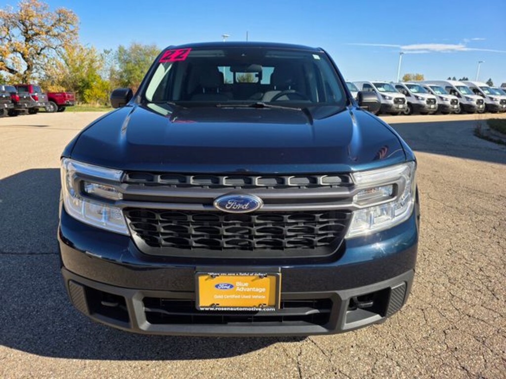 Alto Blue Tinted Clearcoat Metallic 2022 Ford Maverick XLT AWD 8-Speed Automatic EcoBoost 2.0L I4 GTDi DOHC Turbocharged VCT Fresh Arrival, One Owner, Clean Vehicle History, AWD / 4WD / 4X4, Trailer Hitch / Tow Package, Cruise Control, Bluetooth, Backup Camera, Blind Spot Monitor, Heated Seats, Moonroof / Sunroof, Power Driver Seat, Rear USB Ports, 17" Unique Aluminum Wheels, 6.5" Productivity Screen in Instrument Cluster, BLIS Blind Spot Info System w/Cross-Traffic Alert, Equipment Group 300A Standard, Exposed Front Tow Hooks, Ford Co-Pilot360, FX4 Off-Road Package, Higher Capacity Radiator, Hill Descent Control, Lane-Keeping System, Manual-Folding Power Glass Sideview Mirrors, Trailer Hitch Receiver w/4-Pin Connector, Upgraded Cooling Fan, 3.63 Axle Ratio, 4-Wheel Disc Brakes, 6 Speakers, ABS brakes, Air Conditioning, AM/FM radio, Apple CarPlay/Android Auto, Auto High-beam Headlights, Automatic temperature control, Brake assist, Bumpers: body-color, Compass, Delay-off headlights, Driver door bin, Driver vanity mirror, Dual front impact airbags, Dual front side impact airbags, Electronic Stability Control, Exterior Parking Camera Rear, Four wheel independent suspension, Front anti-roll bar, Front Bucket Seats, Front Center Armrest, Front License Plate Bracket, Front reading lights, Fully automatic headlights, Illuminated entry, Knee airbag, Low tire pressure warning, Occupant sensing airbag, Outside temperature display, Overhead airbag, Overhead console, Panic alarm, Passenger door bin, Passenger vanity mirror, Power Moonroof, Power steering, Power windows, Radio data system, Radio: AM/FM Stereo w/6 Speakers, Rear anti-roll bar, Rear step bumper, Remote keyless entry, Speed-sensing steering, Spray-In Bedliner, Steering wheel mounted audio controls, Tachometer, Telescoping steering wheel, Tilt steering wheel, Traction control, Trip computer, 17" Unique Aluminum Wheels, 6.5" Productivity Screen in Instrument Cluster, BLIS Blind Spot Info System w/Cross-Traffic Alert, Equipment Group 300A Standard, Exposed Front Tow Hooks, Ford Co-Pilot360, FX4 Off-Road Package, Higher Capacity Radiator, Hill Descent Control, Lane-Keeping System, Manual-Folding Power Glass Sideview Mirrors, Trailer Hitch Receiver w/4-Pin Connector, Upgraded Cooling Fan.