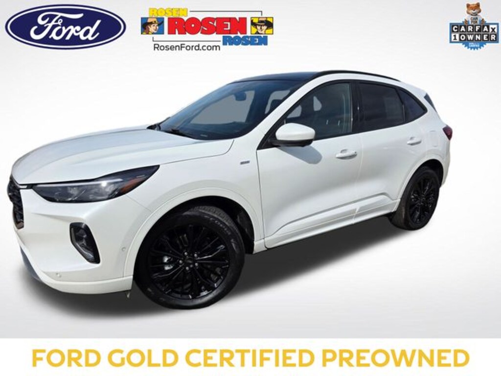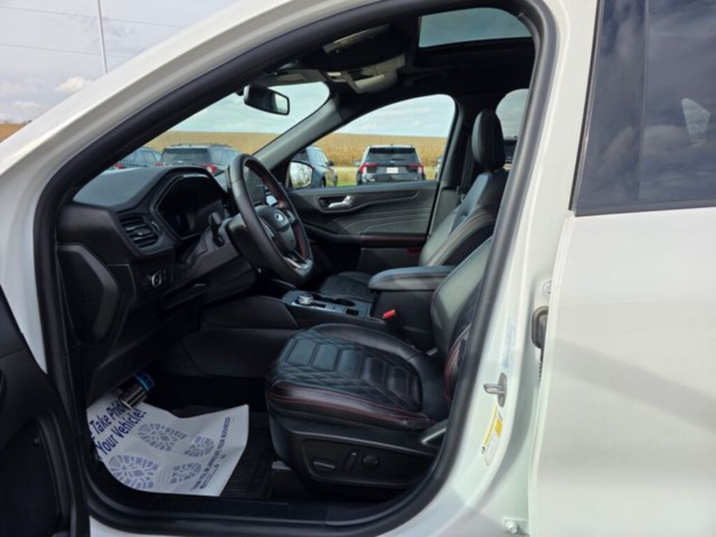 Star White Metallic Tri-Coat 2023 Ford Escape ST-Line Elite AWD 8-Speed Automatic EcoBoost 2.0L I4 GTDi DOHC Turbocharged VCT Fresh Arrival, One Owner, Clean Vehicle History, AWD / 4WD / 4X4, Trailer Hitch / Tow Package, Cruise Control, Bluetooth, Navigation System, Backup Camera, SiriusXM, Blind Spot Monitor, Heated Seats, Leather, Moonroof / Sunroof, Remote Engine Start, Power Driver Seat, Rear USB Ports, AWD, Active Park Assist 2.0, Class II Trailer Tow Package, Equipment Group 501A, HD Radio, Head-Up Display, Heated Leather-Trimmed Front Sport Contour Seats, Navigation system: Connected Navigation, Premium Technology Package, Radio: B&O Sound System by Bang & Olufsen, 2.91 Axle Ratio, 4-Wheel Disc Brakes, 6 Speakers, ABS brakes, Air Conditioning, Alloy wheels, AM/FM radio: SiriusXM, AM/FM Stereo, Auto High-beam Headlights, Auto-dimming Rear-View mirror, Automatic temperature control, Black Roof-Rack Side Rails, Brake assist, Bumpers: body-color, Cargo Mat, Compass, Delay-off headlights, Driver door bin, Driver vanity mirror, Dual front impact airbags, Dual front side impact airbags, Easy Access Cargo Shade, Electronic Fuel Door Release, Electronic Stability Control, Emergency communication system: SYNC 4 911 Assist, Exterior Parking Camera Rear, FordPass Connect, Four wheel independent suspension, Front & Rear Floor Liners w/Carpet Mats, Front anti-roll bar, Front Bucket Seats, Front Center Armrest, Front dual zone A/C, Front fog lights, Front reading lights, Fully automatic headlights, Garage door transmitter, Heated door mirrors, Heated front seats, Heated steering wheel, Heated Vinyl/Cloth Front Sport Contour Bucket Seats, Illuminated entry, Knee airbag, Low tire pressure warning, Memory seat, Neutral Towing Capability, Occupant sensing airbag, Outside temperature display, Overhead airbag, Overhead console, Panic alarm, Panoramic Vista Roof, Passenger door bin, Passenger vanity mirror, Pedestrian Alert Sounder, Power door mirrors, Power driver seat, Power Liftgate, Power passenger seat, Power steering, Power windows, Radio data system, Rain sensing wipers, Rear anti-roll bar, Rear reading lights, Rear seat center armrest, Rear window defroster, Rear window wiper, Remote keyless entry, Security system, Speed control, Speed-sensing steering, Speed-Sensitive Wipers, Split folding rear seat, Spoiler, Sport steering wheel, Steering wheel mounted audio controls, SYNC 4 w/Enhanced Voice Recognition, Telescoping steering wheel, Tilt steering wheel, Traction control, Trip computer, Variably intermittent wipers, Wheels: 19" Ebony-Painted Aluminum, Wheels: 19" Machined-Face Ebony-Painted Aluminum, AWD, Active Park Assist 2.0, Class II Trailer Tow Package, Equipment Group 501A, HD Radio, Head-Up Display, Heated Leather-Trimmed Front Sport Contour Seats, Navigation system: Connected Navigation, Premium Technology Package, Radio: B&O Sound System by Bang & Olufsen.