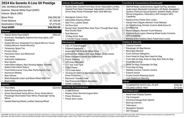 After a ton of research on many mid size SUVs, I went on test drives. After driving the 2021 Sorento SX Prestige, the choice was simple. This SUV has safety, comfort, performance, and convience features of vehicles costing many thousands more. The ride quality is outstanding and a pleasure to drive. The power from the turbo charged engine will totally surprise you. KIA is now a manufacturer of quality and value which others better pay attention to. Namely Toyota, Honda and any domestic vehicle on the road today. I will gladly compare my Sorento to ANY vehicle. KIA nailed it. Please, if you are in the market for a mid size SUV, just head to a KIA dealership and check out this amazing vehicle. - 5.0