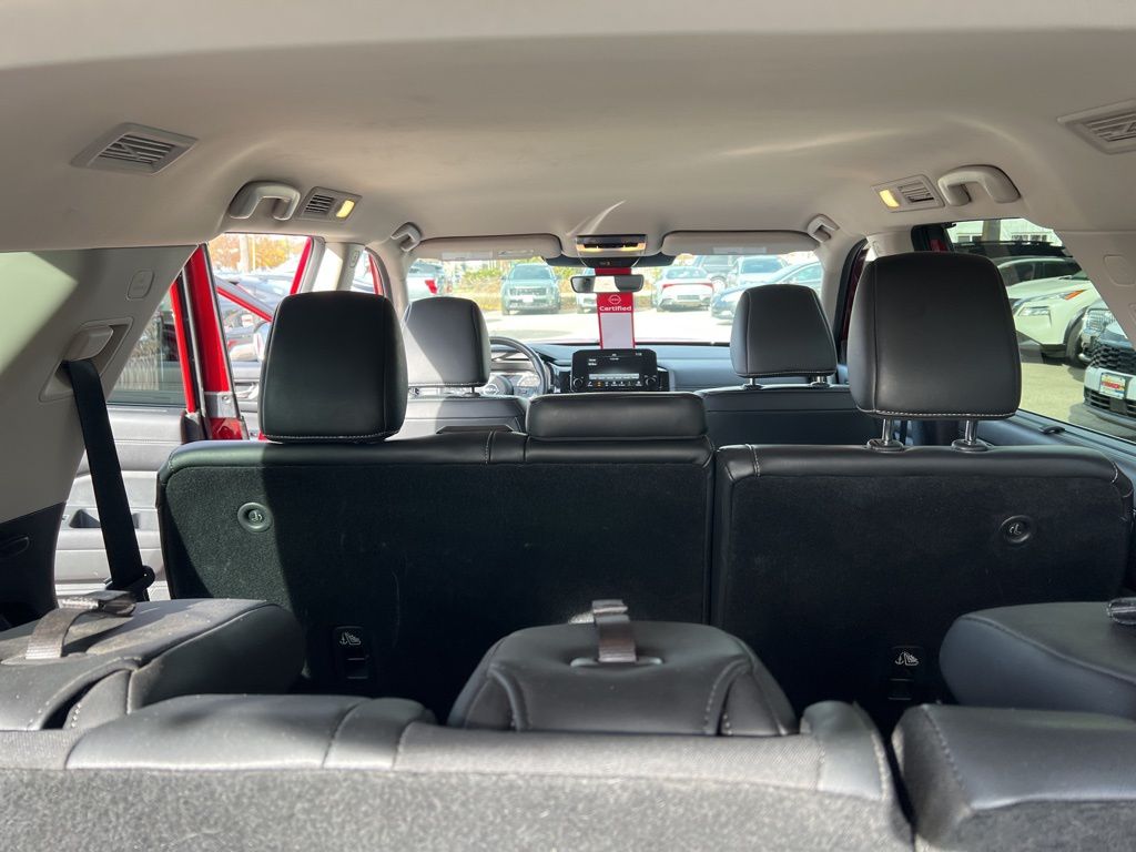 Nissan Pathfinder SL. Purchased the car July 2021 when they first came out. I love everything about this car. I have not had any issues to date. Just went thru a snow storm with about 7inches of ice and snow. I am on a pretty steep hill and zero issues in the snow and ice. I really can't think of an issue i have with this car. I have taken this on 9 hour trip with a total of seven and had no issues in the mountains. - 5.0