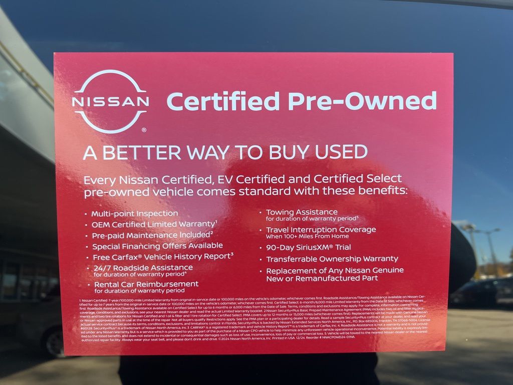 * 7-Year/100,000 Mile Limited Warranty, 1 Year Prepaid Maintenance Included in the First Year of Ownership or 15,000 Miles, Whichever Comes First. 100% Electric Nissan Models Only.