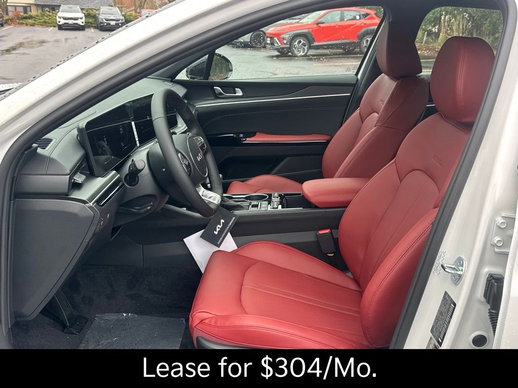ABS brakes, Air Conditioning, Alloy wheels, AM/FM radio: SiriusXM, Auto-Dimming Mirror with HomeLink, Carpeted Floor Mats, Electronic Stability Control, Fully automatic headlights, GT-Line Red Interior Package, Heated door mirrors, Heated front seats, LED Trunk Light, Power door mirrors, Power driver seat, Power steering, Power windows, Remote keyless entry, Security system, Speed control, Split folding rear seat, Steering wheel mounted audio controls, SynTex Seat Trim, Telescoping steering wheel, Tilt steering wheel, Traction control, Trip computer, Variably intermittent wipers, Wheel Locks. 25/36 City/Highway MPG 2026 Kia K5 GT-Line