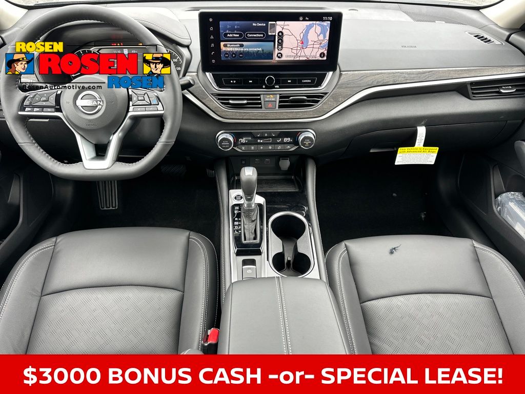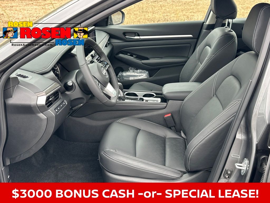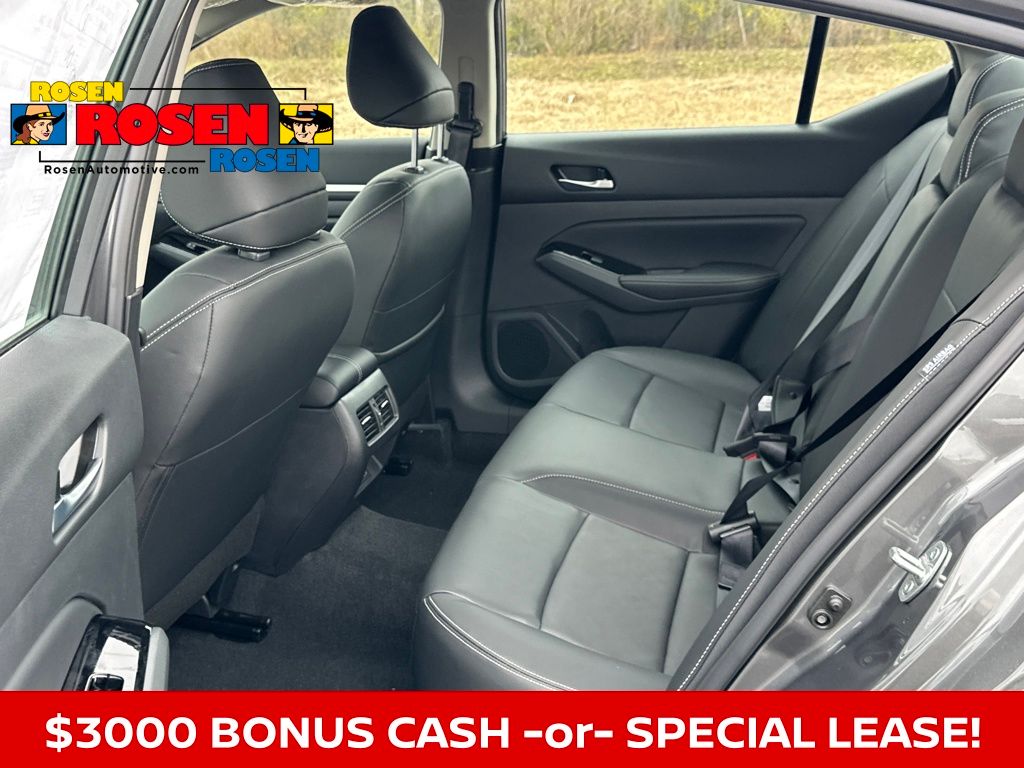 CVT with Xtronic, ABS brakes, Alloy wheels, AM/FM radio: SiriusXM, Automatic temperature control, Blind Spot Warning, Body-Colored Splash Guards, Clear Bumper Protector, Electronic Stability Control, Floor Mats/Trunk Mat/Hideaway Net, Front dual zone A/C, Fully automatic headlights, Heated front seats, Leather-Appointed Seat Trim, Power door mirrors, Power driver seat, Power moonroof, Power steering, Power windows, Rear Parking Sensors, Remote keyless entry, Speed control, Split folding rear seat, Steering wheel mounted audio controls, Telescoping steering wheel, Tilt steering wheel, Traction control, Trip computer, Variably intermittent wipers. Priced below KBB Fair Purchase Price! 27/37 City/Highway MPG 2025 Nissan Altima 2.5 SL