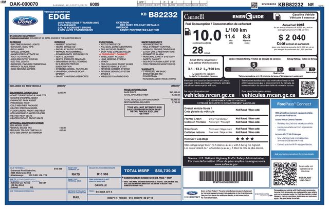 New Price! Certified. Ruby Red Metallic Tinted Clearcoat 2019 Ford Edge Titanium AWD 8-Speed Automatic EcoBoost 2.0L I4 GTDi DOHC Turbocharged VCT Fresh Arrival, Clean Vehicle History, AWD / 4WD / 4X4, Cruise Control, Bluetooth, Backup Camera, SiriusXM, Blind Spot Monitor, Heated Seats, Leather, Moonroof / Sunroof, Remote Engine Start, Power Driver Seat, Rear USB Ports, Ford Blue Certified Certified, AWD, Adaptive Cruise Control w/Stop & Go, Adaptive LED Headlamps, Auto-Dimming Driver's Sideview Mirror, Cold Weather Package, Enhanced Active Park Assist, Equipment Group 301A, Evasive Steering Assist, Ford Co-Pilot360 Assist+, Front & Rear Floor Liners, Front 180 Degree Camera, Heated Rear-Seats, Heated Steering Wheel, Lane Centering, Leather Trimmed Heated/Cooled Bucket Seats, Panoramic Vista Roof, SiriusXM Traffic & Travel Link, Voice-Activated Touchscreen Navigation System, Windshield Wiper De-Icer, 12 Speakers, 4-Wheel Disc Brakes, ABS brakes, Air Conditioning, Alloy wheels, AM/FM radio: SiriusXM, AppLink/Apple CarPlay and Android Auto, Auto High-beam Headlights, Auto tilt-away steering wheel, Auto-dimming Rear-View mirror, Automatic temperature control, Axle Ratio: TBA, Brake assist, Bumpers: body-color, CD player, Compass, Delay-off headlights, Driver door bin, Driver vanity mirror, Dual front impact airbags, Dual front side impact airbags, Electronic Stability Control, Emergency communication system: SYNC 3 911 Assist, Four wheel independent suspension, Front anti-roll bar, Front Bucket Seats, Front Center Armrest w/Storage, Front dual zone A/C, Front fog lights, Front reading lights, Fully automatic headlights, Garage door transmitter, Heated door mirrors, Heated front seats, Illuminated entry, Knee airbag, Leather-Trimmed Heated Sport Bucket Seats, Low tire pressure warning, Memory seat, Occupant sensing airbag, Outside temperature display, Overhead airbag, Overhead console, Panic alarm, Passenger door bin, Passenger vanity mirror, Power door mirrors, Power driver seat, Power Liftgate, Power passenger seat, Power steering, Power windows, Radio: B&O Sound System by Bang & Olufsen, Rain sensing wipers, Rear anti-roll bar, Rear Parking Sensors, Rear reading lights, Rear seat center armrest, Rear window defroster, Rear window wiper, Remote keyless entry, Roof rack: rails only, Security system, SiriusXM Radio, Speed control, Speed-Sensitive Wipers, Split folding rear seat, Spoiler, Steering wheel memory, Steering wheel mounted audio controls, SYNC 3 Communications & Entertainment System, Tachometer, Telescoping steering wheel, Tilt steering wheel, Traction control, Trip computer, Turn signal indicator mirrors, Variably intermittent wipers, Wheels: 19" Nickel-Painted Aluminum, AWD, Adaptive Cruise Control w/Stop & Go, Adaptive LED Headlamps, Auto-Dimming Driver's Sideview Mirror, Cold Weather Package, Enhanced Active Park Assist, Equipment Group 301A, Evasive Steering Assist, Ford Co-Pilot360 Assist+, Front & Rear Floor Liners, Front 180 Degree Camera, Heated Rear-Seats, Heated Steering Wheel, Lane Centering, Leather Trimmed Heated/Cooled Bucket Seats, Panoramic Vista Roof, SiriusXM Traffic & Travel Link, Voice-Activated Touchscreen Navigation System, Windshield Wiper De-Icer.