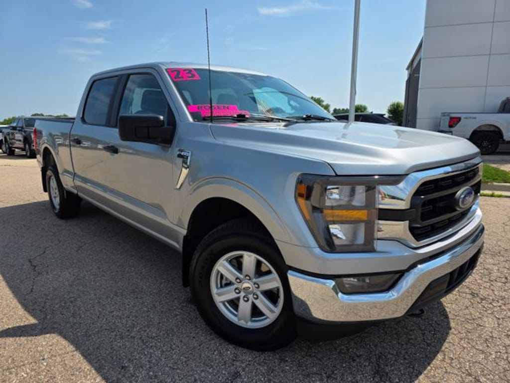 Iconic Silver Metallic 2023 Ford F-150 XLT 4WD 10-Speed Automatic 3.5L V6 EcoBoost One Owner, Clean Vehicle History, AWD / 4WD / 4X4, Trailer Hitch / Tow Package, Cruise Control, Bluetooth, Navigation System, Backup Camera, SiriusXM, Power Driver Seat, Rear USB Ports, 4WD, Class IV Trailer Hitch Receiver, GVWR: 7,150 lbs Payload Package, Integrated Trailer Brake Controller, Navigation System, Pro Trailer Backup Assist & Pro Trailer Hitch Assist, Trailer Tow Package, 3.31 Axle Ratio, 4-Wheel Disc Brakes, 6 Speakers, ABS brakes, Air Conditioning, Alloy wheels, AM/FM radio, Auto High-beam Headlights, Brake assist, Bumpers: chrome, Cloth 40/20/40 Front Seat, Compass, Delay-off headlights, Driver door bin, Driver vanity mirror, Dual front impact airbags, Dual front side impact airbags, Electronic Stability Control, Emergency communication system: SYNC 4 911 Assist, Exterior Parking Camera Rear, Front anti-roll bar, Front Center Armrest w/Storage, Front fog lights, Front reading lights, Front wheel independent suspension, Fully automatic headlights, Heated door mirrors, Illuminated entry, Low tire pressure warning, Occupant sensing airbag, Outside temperature display, Overhead airbag, Overhead console, Panic alarm, Passenger door bin, Passenger vanity mirror, Power door mirrors, Power steering, Power windows, Radio data system, Radio: AM/FM Stereo w/6 Speakers, Rear reading lights, Rear step bumper, Rear window defroster, Remote keyless entry, Security system, Speed control, Speed-sensing steering, Split folding rear seat, Steering wheel mounted audio controls, SYNC 4, Tachometer, Telescoping steering wheel, Tilt steering wheel, Traction control, Trip computer, Variably intermittent wipers, Voltmeter, Wheels: 17" Silver Painted Aluminum, 4WD, Class IV Trailer Hitch Receiver, GVWR: 7,150 lbs Payload Package, Integrated Trailer Brake Controller, Navigation System, Pro Trailer Backup Assist & Pro Trailer Hitch Assist, Trailer Tow Package.