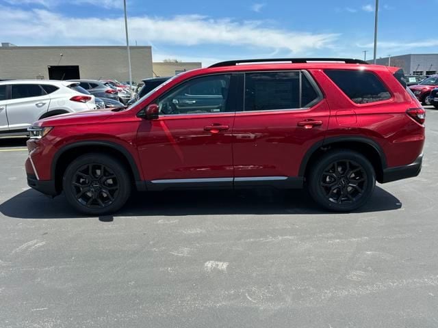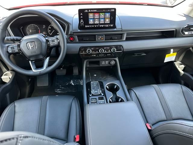 Step into a new level of refinement and versatility with the 2025 Honda Pilot Touring+. As one of the most well-equipped trims in the Pilot lineup, the Touring+ brings together bold SUV styling, premium features, and enhanced everyday practicalitymaking it the ideal vehicle for families who want more from their three-row SUV. Power and Performance You Can Rely On At the heart of the Touring+ is Hondas proven 3.5-liter DOHC V6 engine, delivering 285 horsepower and 262 lb-ft of torque. Paired with a responsive 10-speed automatic transmission, the Pilot offers smooth acceleration and confident passing powerwhether you're merging on the highway or towing up to 5,000 pounds with available all-wheel drive. The intelligent i-VTM4 all-wheel drive system provides excellent traction across changing conditions, while the multi-mode drive system adapts to snow, sand, or tow situations with the push of a button. Upscale Style Meets Everyday Utility The Touring+ stands out with 20-inch alloy wheels, chrome exterior accents, and signature LED lighting. Its wide, athletic stance and sculpted profile give it the presence of a true full-size SUV. Inside, the Pilot Touring+ surrounds you with leather-trimmed seating, heated front and second-row seats, and a panoramic moonroof that floods the cabin with natural light. With seating for seven or eightdepending on configurationyou get both comfort and flexibility. Smart Technology for Modern Families The Touring+ includes a full suite of connected technology, including: 12.3-inch digital instrument display 9-inch touchscreen infotainment system with Google built-in Wireless Apple CarPlay and Android Auto Honda Satellite-Linked Navigation System with voice recognition Wi-Fi hotspot capability Bose premium 12-speaker sound system CabinTalk in-car PA system Need to keep everyone charged? Multiple USB-C ports in all three rows make it easy to stay powered up on the go. Honda Sensing Safety Standard Safety is front and center with the full Honda Sensing suite, including: Collision Mitigation Braking System Road Departure Mitigation Adaptive Cruise Control with Low-Speed Follow Lane Keeping Assist System Blind Spot Information System with Cross Traffic Monitor Traffic Sign Recognition Front and Rear Parking Sensors Why Choose the 2025 Honda Pilot Touring+? Because it offers the perfect balance of luxury, space, and advanced capability. Whether you're loading up for a weekend getaway or navigating the weekday grind, the Touring+ delivers premium comfort and confidence at every turn. Elevate your family SUV experienceschedule a test drive of the 2025 Honda Pilot Touring+ today and discover what modern adventure feels like., AWD. 2025 Honda Pilot Touring+ 19/25 City/Highway MPG Radiant Red Metallic II